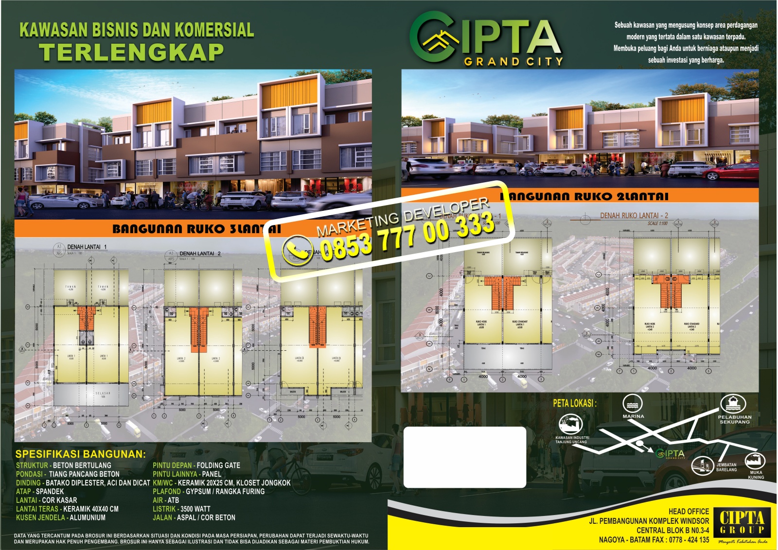 Uang Muka untuk Ruko dicicil 12X & untuk Gudang bisa dicicil 18X